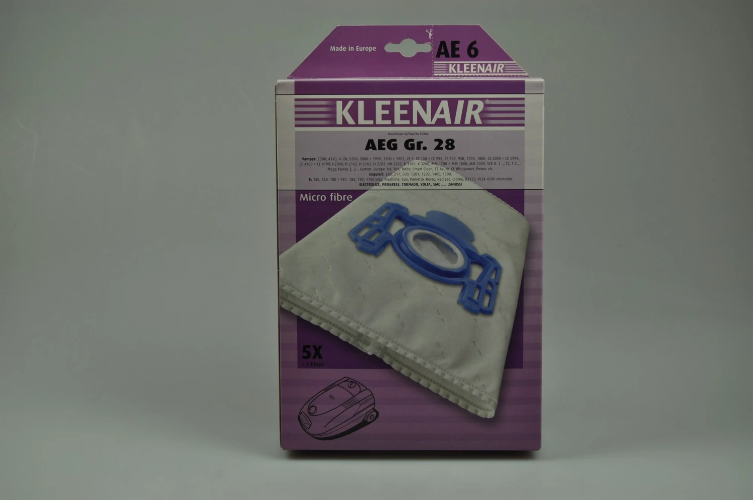 Kleenair Staubsaugerbeutel, AEG AE 6. Enthält 5 Beutel + 1 Filter. Entspricht Gr. 28.